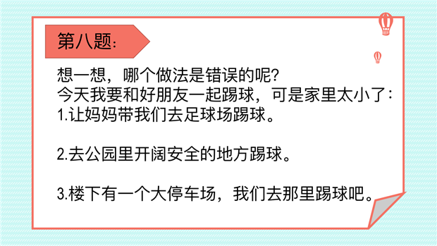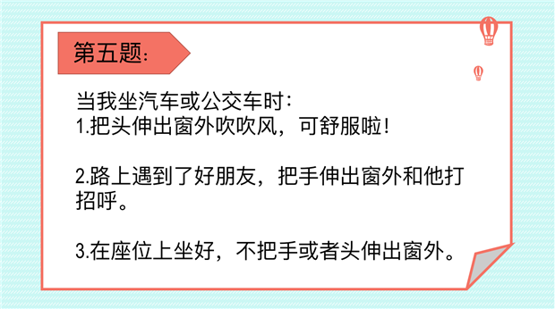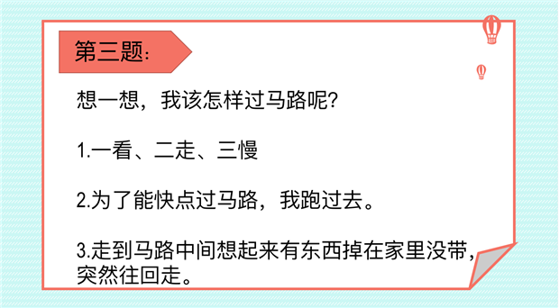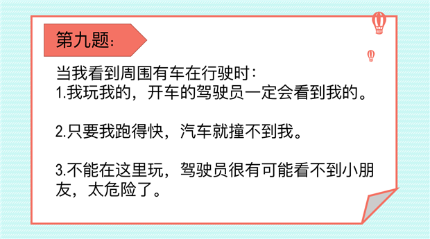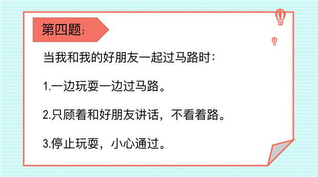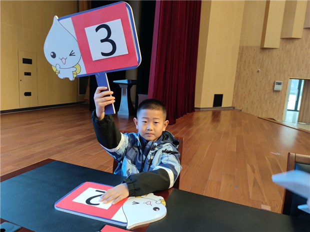 “过马路看到红灯时,我应该怎么做呢?”......参赛选手能准确举起对应号码牌,台下的小朋友也都忍不住用手指来比划,参与竞猜了呢!每一题后的视频,小朋友看得津津有味,有时候长吸一口冷气,他们也为视频里在危险边缘徘徊的同伴捏了一把汗呢。