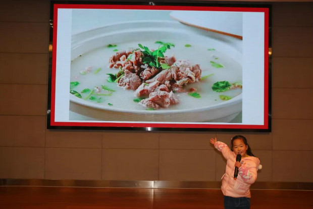 一(3)班的严雅静,来自于朝鲜族,她和大家分享在冬至这一天人们会煮红豆粥,暖暖红红的红豆粥,不仅可以驱除寒冷,还能在新的一年为人们带来好运。