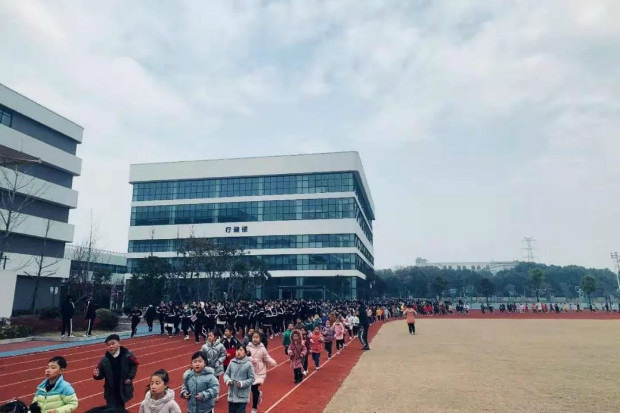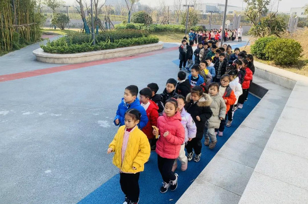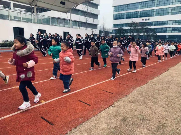 初冬,在体育老师的带领下,小学部的大课间根据学校地形的自然路线跑圈,路边的优美景色、地面的色块组合增加了长跑的趣味性。小水娃们排着整齐的队伍,跑了一圈又一圈。尽管跑得气喘吁吁,但水娃们咬牙坚持,红彤彤的脸蛋如同朵朵竞相盛开的花儿,与绿树青草相映成趣。