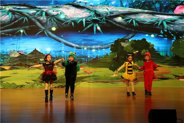 看这场景是不是有一种置身森林的感觉呀?森林里的小昆虫们正在参加一场舞蹈比赛呢。小演员们一上场,观众席上就爆发出了阵阵掌声和赞叹。