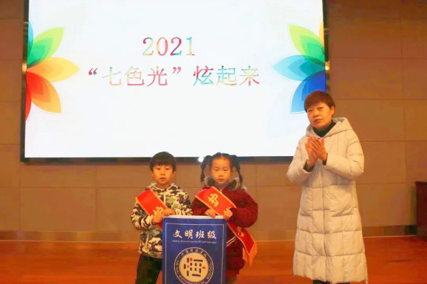 不管是海洋里腾跃的小海豚,还是无惧风雨的小海鸥,抑或是勇往直前的小鲸鱼,还是迎风远航的小帆船,我们都希望大家能够在七色光下茁壮成长:男孩,敢担当、有绅士风度;女孩,能独立、有淑女气质。加油吧,河海娃!