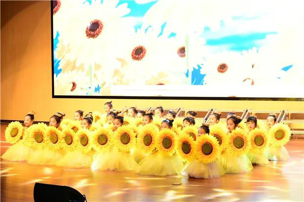 24个小可爱手持向阳花站上舞台的时候,似乎给整个会场带来了金灿灿的阳光。随着音乐节奏旋转、跳跃、变换队形,小可爱们的表现令人惊叹不已,台下的老师也忍不住拿出手机记录下这精彩的场景。
