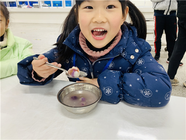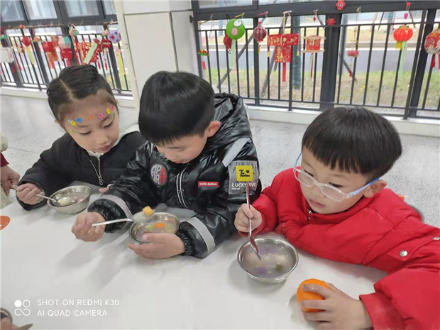 尝一口自己做的元宵,劳动的果实太甜美啦,小水娃们吃得可香啦!