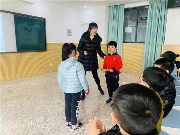 紧接着,河海实验学校小学部的秦悦老师也为河海娃带了一首春天的歌曲《小小雨点》。孩子们在秦老师的引导下展开想象,用身边的物品模拟出生活中各种雨点的声音,并通过律动感知、歌唱表演感受了音乐中的“春雨之妙”。