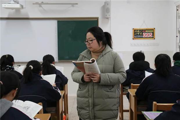 这是活力充沛的英语组女将们,九年级时间少、任务重,原本定的口语考试训练时间,是每天的17:00-17:30,可是半小时要把当天的任务完成相当困难。于是,你看,一个月以来,他们抓住零散时间、坚持留校辅导,让孩子一遍遍地背诵,一个个地过关……