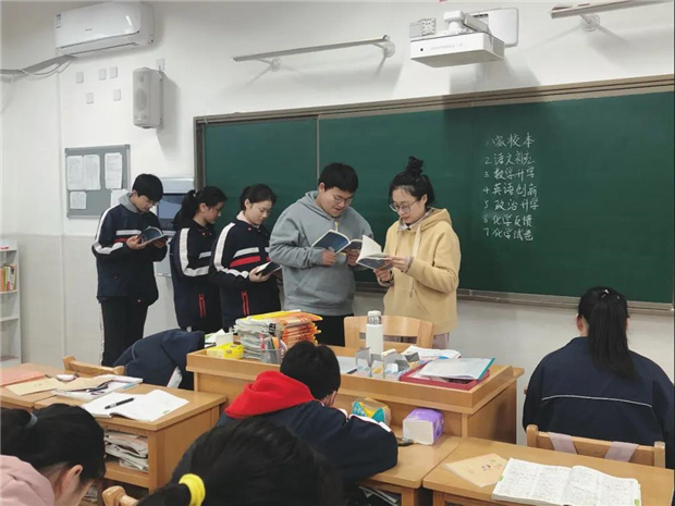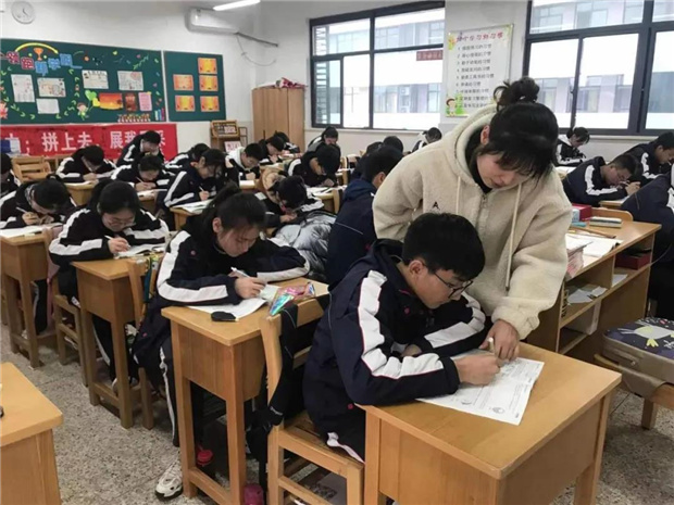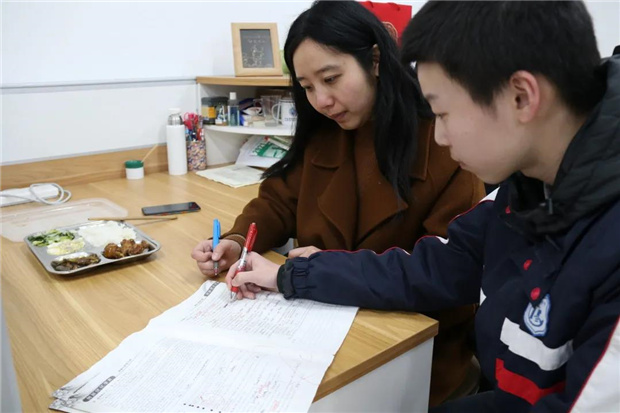 晚自习时,在课桌前面、教室外面、办公室内,处处都是老师辅导的身影。或讲解做题思路,或解答错误原因,或和学生热情谈心,或挑灯批改作业……陪伴是最长情的告白,同学们冲锋在前,老师是你们备考路上最有力的同盟军、最坚强的后盾。