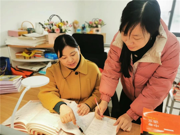 有的时候,是四人围聚的集备。他们或对新教材内容进行教学研讨,或对学生呈现的问题出谋划策,如果是周四的教研活动,他们也会全员出动、收获成长。