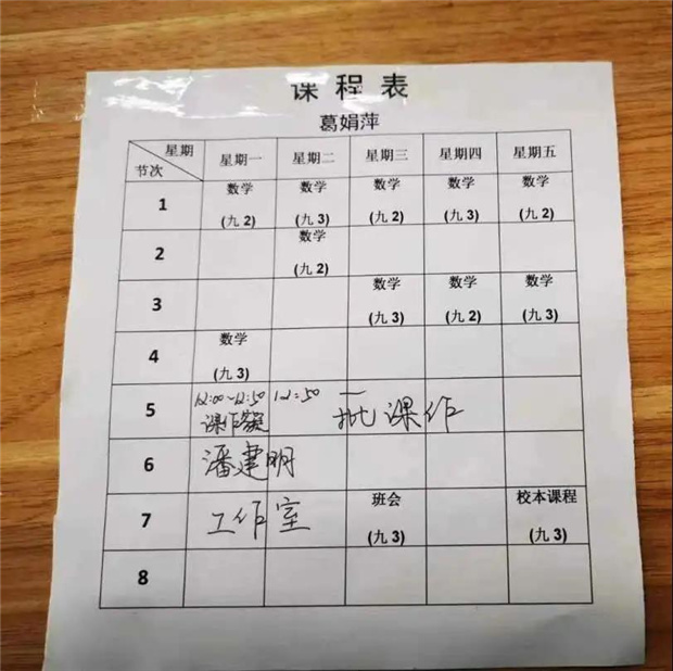 与别的老师不同的是,数学老师的课程表上,中午总是写的满满当当。