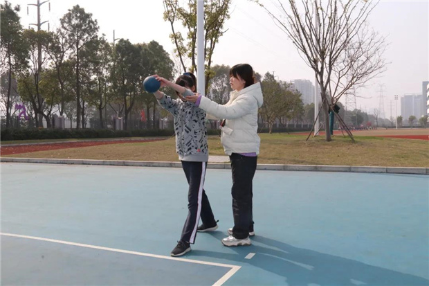 “你为什么不愿意相信自己,跟你说了,你是动作不到位。来,我带你再做一遍!”吴老师可不愿意放弃。“一,二……投!”