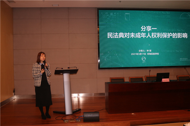 钟律师首先从“《民法典》对未成年人权利保护的影响”开始讲起,她以案释法、以法论事,通过联系工作实际、典型案例,深入浅出地让全体教师知道民法典关于教育的相关规定,助力老师们依法依规做好教育教学、提高安全防范能力、保障合法权益,维护学校秩序和社会稳定。