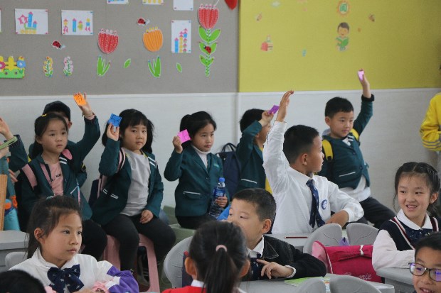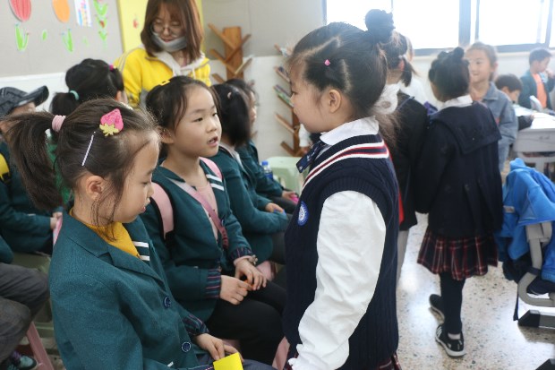 走过一年级的教室,听着一年级学长学姐们朗朗的读书声,自信响亮的发言,小朋友们立刻感受到了学习的气氛,脚步也不知不觉地放慢、放轻了……