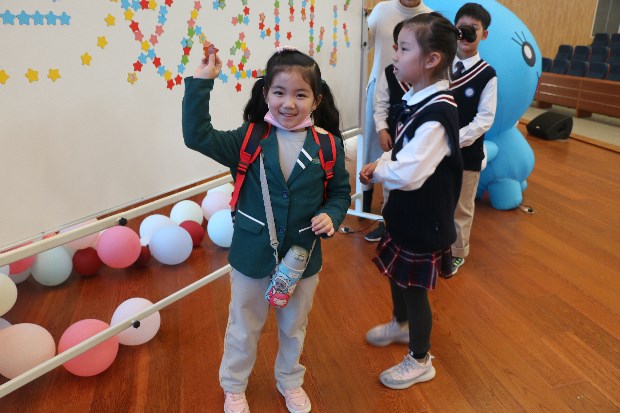 在一年级小哥哥小姐姐的引导下,小朋友们开启了河海的参观之旅。宽阔的篮球场引得他们不断惊呼;实验室里摆放的显微镜引得他们好奇地仔细打量;明亮的舞蹈房、桌椅整齐的美术教室和放着各式各样乐器的音乐教室更是带给他们不一样的感受:原来不同课程还要到不一样的教室里上呀。