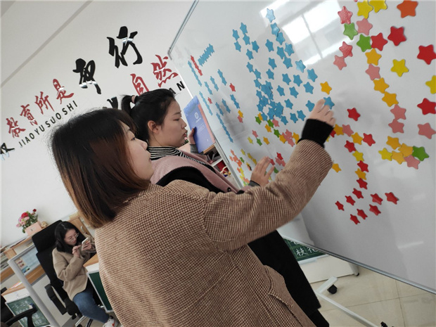 2020年8月,河海实验学校小学部成立。从无到有的创业之路,忙碌程度可想而知。本学期美术老师产假,原本人力不足的团队显得更加忙碌。为了让蔡老师全力以赴备赛,王冬娟校长挂“帅”指挥、创意无限,年级组长陈翠茹部署安排、步步到位,年轻教师个个投入、事事用心,“接福牛”开学季、“嬉元宵”亲子乐、“璀璨银河”“星河相约”幼小衔接、“叶澜先生来访”等大型活动,以及更多日常的教研活动……组里的10位老师齐心协力、统统“扛”下,再次用行动诠释了“金三角”文化——一个字:干!两个字:主动!三个字:让我来!他们用默默地支持传递着团队的力量:加油!加油!为进步加油!
