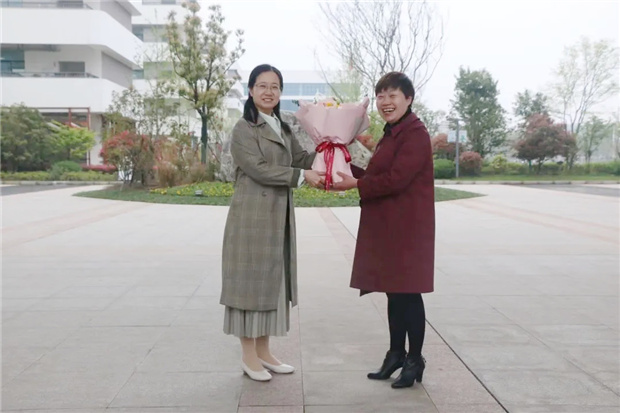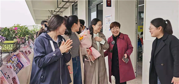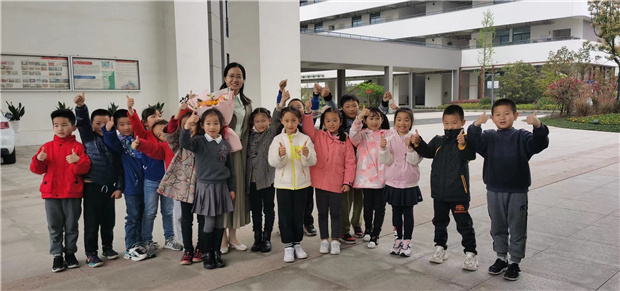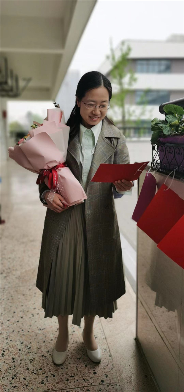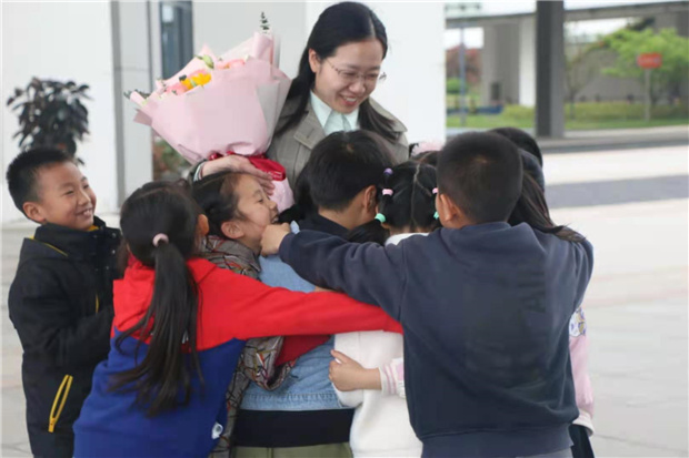 下午2时,汽车慢慢驶入学校大门。正当蔡老师疑问之时,王校长已手捧鲜花迎了上来:“欢迎战神赞誉归来……”接下来一系列的活动充满了仪式感,蔡老师恍如梦境、热泪盈眶。小学部全体教师门口列队欢迎,一群水娃娃欢笑着飞奔过来紧紧抱住了蔡老师,一年级全体同学用镶有蔡老师照片的小卡纸做成了心愿卡挂在了走廊的花架上:“长大后,我也要成为你!”“我要向蔡老师一样,拿一等奖!”“蔡老师,感谢你为河海争得了荣誉!”走过教室,每个班的小朋友都以最热情的方式迎接蔡老师的归来……此时的蔡老师,已经成为孩子们心中的“女神”……这样的仪式成为无声的教育,不仅为老师们树立了榜样,也在孩子们心中种下了“努力、奋斗、做最棒的自己”的种子。