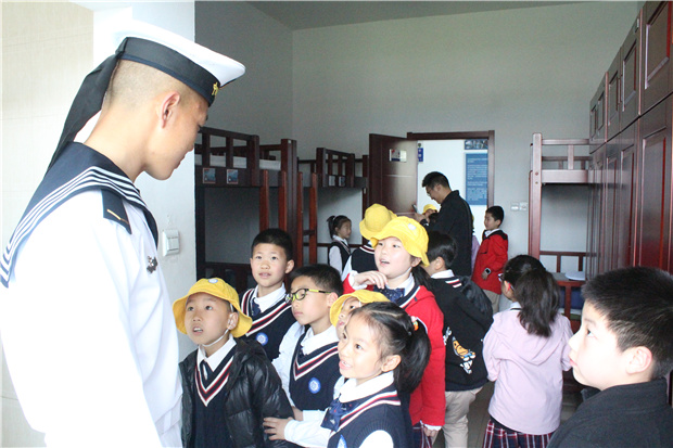 吴晓涵在参观完海军叔叔的宿舍后说:“他们的被子叠得整整齐齐,就像是一块豆腐一样。海军叔叔真是太帅气啦,我长大后也想成为伟大的军人!”