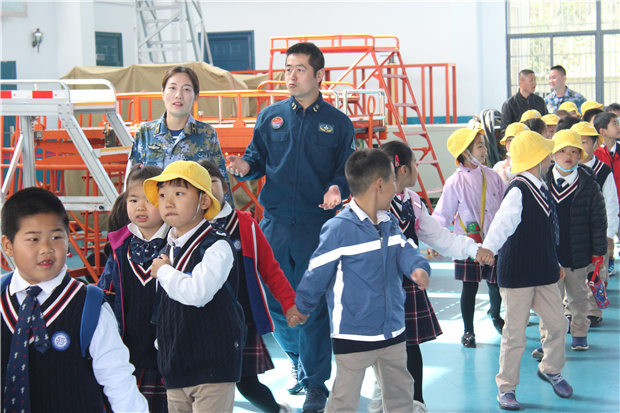 在参观过程中就表现出“小战士”精神的陆艺钒告诉大家:“就算是跑步,海军叔叔也能保持间距不变,我觉得他们实在是太棒了,我也要向他们学习,成为一名精气神十足的小学生!”