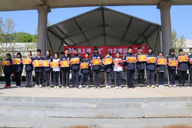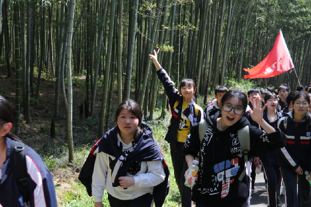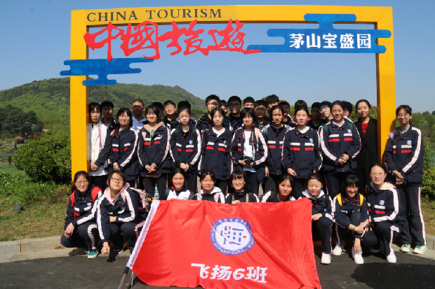 今天的研学活动,与以往有一些不同:你看,青山绿水之间,鲜红的条幅、飘扬的班旗、少年的笑颜……他们要在这里征服茅山,让茅山见证他们的勇毅,用登高致远为70天后的中考摇旗助威、加油鼓劲。