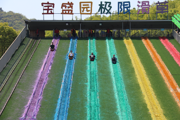 今天,他们感受了一场体验欢乐爆表的解压之旅:坝上滑草的美妙欢快、天空步道的步步惊心、玻璃栈道的如履薄冰,连秋千竟然也能惊险刺激……