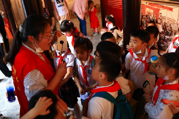 恽代英纪念馆既是一座烈士纪念馆,也是一座传统文化纪念馆。飞檐黛瓦、罗砖粉墙、木格窗花……处处彰显着柔美秀丽的江南风韵。孩子们一边欣赏,一边听导游姐姐讲恽代英英勇就义前发生的故事,他们不由得感叹:“中国共产党,真是了不起!”