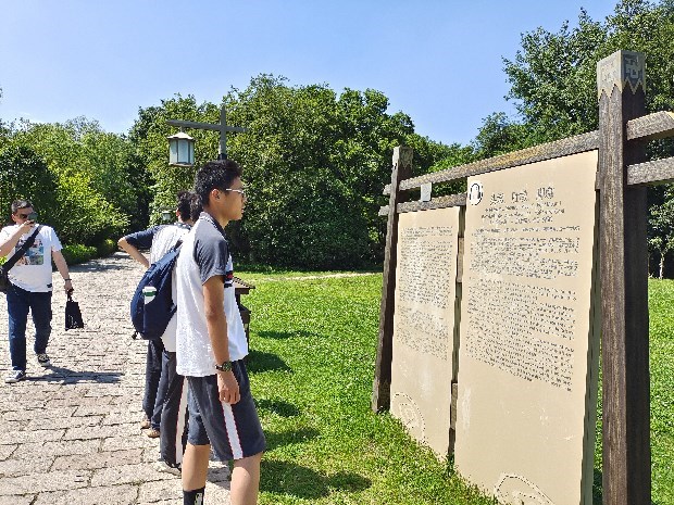 5月22日,河海实验学校八年级的海粟7班在淹城古文明遗址公园集结。踏入公园,翠绿的草坪,秀丽的大树,不仅散发浓郁的生机,更给予了我们仿佛穿越时光的感觉。