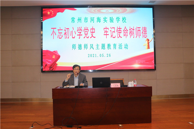 为深入贯彻落实习近平总书记在党史学习教育动员大会上的重要讲话精神,更好地学党史、悟思想、办实事、开新局,5月26日下午,常州市河海实验学校党支部邀请中共常州市委党校党委副书记、常务副校长王定新作题为《坚定道路自信 锤炼政党品格》的专题报告。党支部书记赵卫勇同志主持会议,全体教工参加会议。
