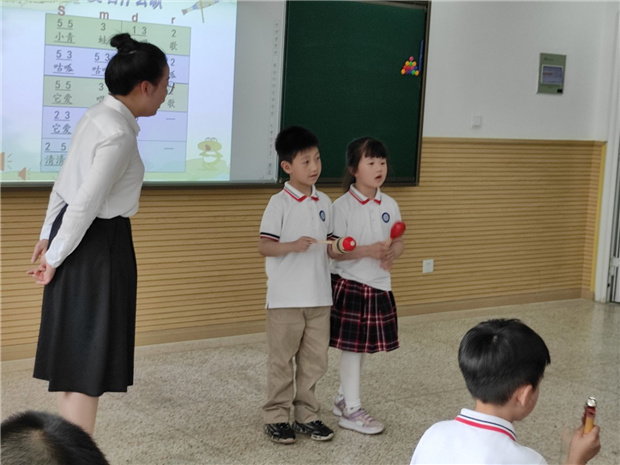 一(4)班的同学们今天在秦悦老师的带领下,在聆听、感受、游戏、表演、创编等活动中感受音乐的美妙、提升节律的欢快!