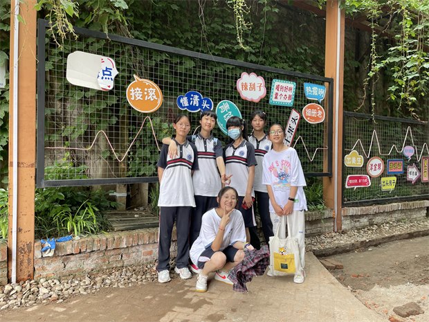 再一转头,同学们有说有笑,在历史留下的痕迹中穿梭,在岁月沉淀的印刻下说笑,却也不显突兀,完美地融入了进来。