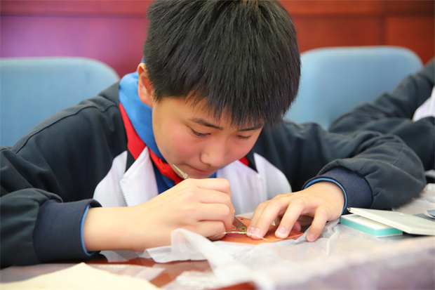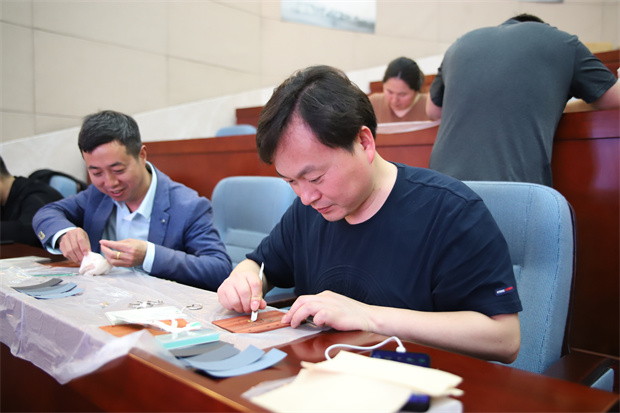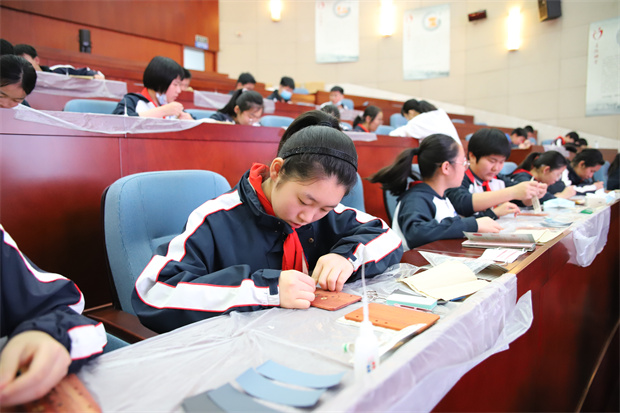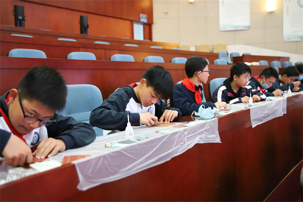 最精彩的部分是同学们在专业老师的指导下,体验镶嵌、打磨、打孔、上蜡等操作,创作一本属于自己的木制“春满瓷瓶”笔记本。这个环节让同学们感悟了博大精深的瓷器文化,及瓷器文化中别样的和暖春风,还锻炼了动手能力,收获了满满的成就感。