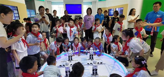 展厅机器人一段酷炫充满动感的舞蹈让孩子们激动得热血沸腾,有街舞爱好的孩子还跟着机器人一起舞动了起来。