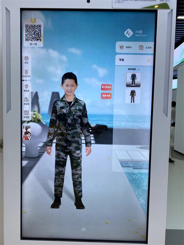 来到了女生们最爱的3D试衣镜,它可以通过视频摄像头采集人体信息,实时生成用户建模数据,并可以选择不同的衣服进行匹配,孩子们可以灵活地选择不同的造型试衣,分享给家人朋友。一位爱漂亮的小朋友说:“我要让我妈妈也买一面这样的镜子,这样我和她以后就不用去店里试衣服了,照照镜子就能知道合适不合适,用手点点就可以购买,太方便了。”