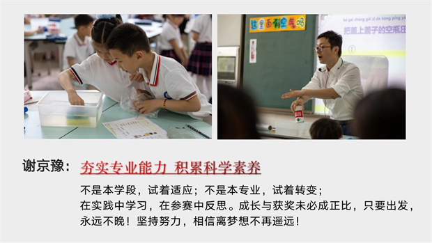 谢京豫:科学涉猎广泛,素养需日益积累,谨于日常教学,厚积方能勃发,扬起风帆,驰骋赛场,不负韶华。