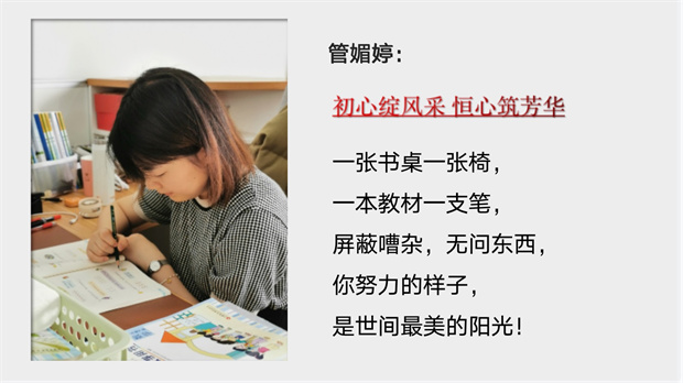 管媚婷,区小学数学教师基本功竞赛二等奖获得者:初心绽风采,恒心著芳华,在最好的年华成就最美的自己。