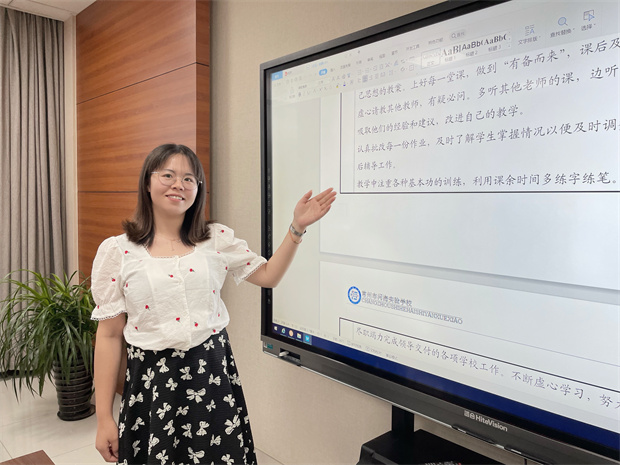 管媚婷:总结经验,收获成长,在河海的第一年,我开始积极寻求专业的发展,在金三角团队中,和小伙伴们一起书写了青春最美的诗篇:区小学数学教师基本功二等奖。