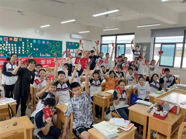你感受到了吗?班主任们带着殷殷寄语来了,带着暖心礼物、花式应援来了:红包、祈福签、好运粽……一系列来自于初三班主任的神秘惊喜让同学们感动不已。