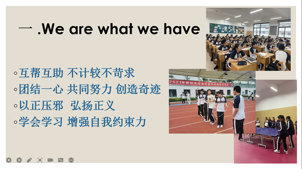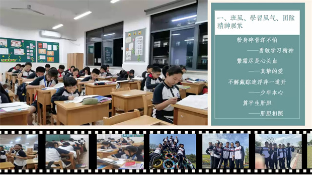 七年级的展示让我们感受到每一个班级的同学都在充满幸福感的大集体中取得了长足的进步:在这里我们看到了乐思善学的1班、团结进取的2班、笃学敏行的3班、和谐温馨的4班、拼搏向上的5班、坚韧无畏的6班、文明有序的7班、互助互爱的8班、不断进步的9班、脚踏实地的10班……在这里,每个班级都是一道亮丽的风景线,少年们努力奋斗、不分彼此、共同成长,拉开了他们在河海追梦的序幕。