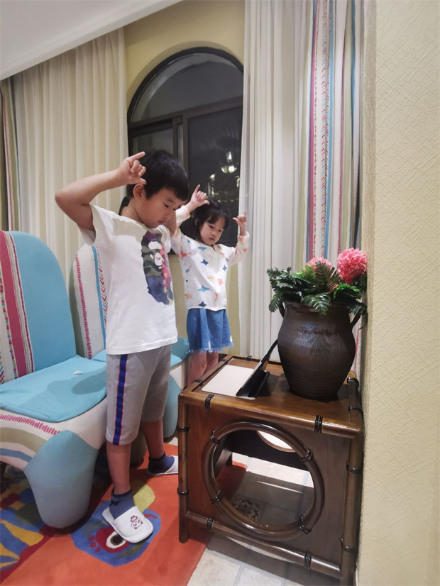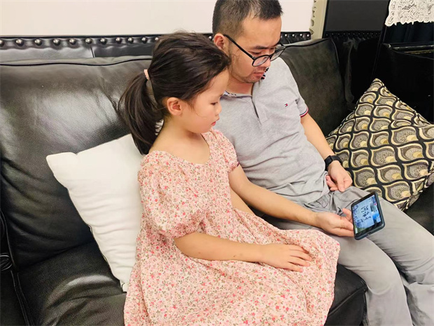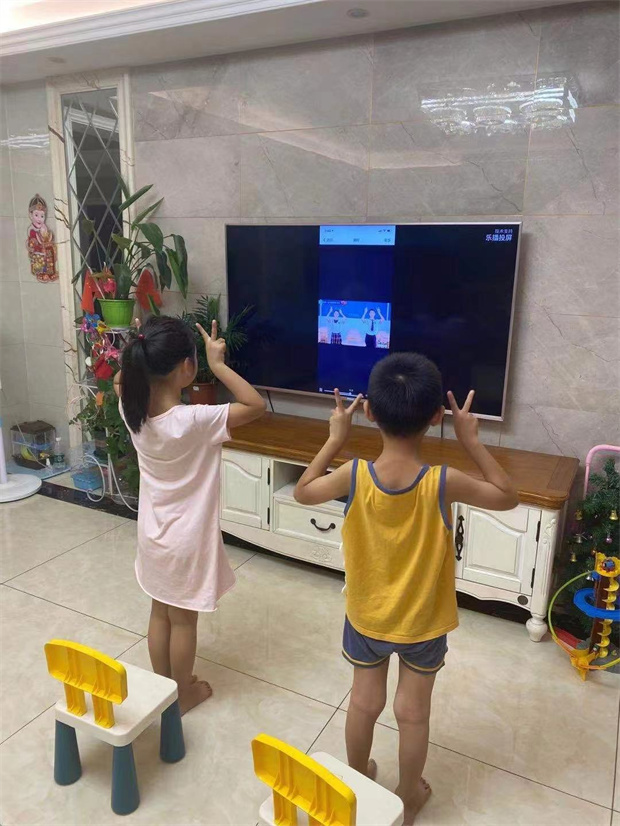 同学们和爸爸妈妈一起,早早准备好设备,第一次以“同学”的关系开启学习。值得一提的是,很多二胎家庭的孩子还带上了弟弟妹妹一起观看呢!