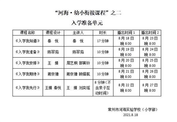 8月18日晚上8:00,第一讲《河海·幼小衔接课程》“入学我知道”准时开播啦!