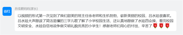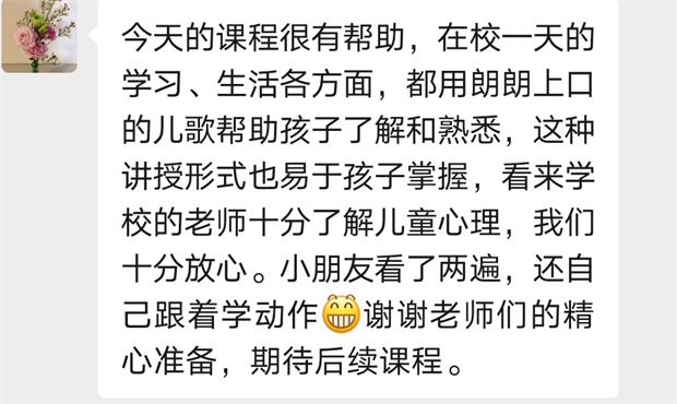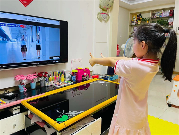 家长的反馈表明,第一讲“入学我知道”播出效果好评如潮!它以内容的丰富、界面的鲜活以及主播教师语言的亲切带给孩子们全新的感受。他们不仅初步了解了入学的相关信息,还主动跟着“水娃四会操”、“水娃四季歌”唱起来、跳起来……在不知不解中消除了入学焦虑,产生了对小学生活的热切向往,在内心架起了“衔接”的桥梁。