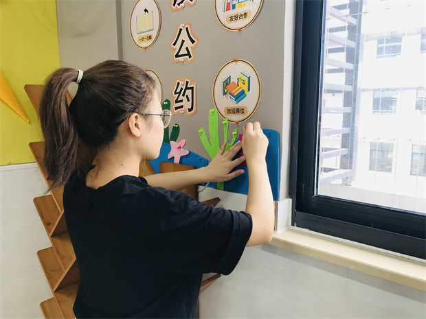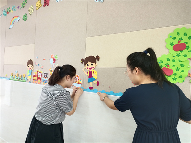 夏日炎炎也阻止不了老师们的创作热情。各班班主任根据方案提前绘制班级文化建设图纸,利用假期休息时间“相约开工”,剪、贴、画、钉……分工合作、配合默契。不仅追求设计的巧妙,更追求布展的品位,整个年级呈现出一幅幅美丽的班级画卷。