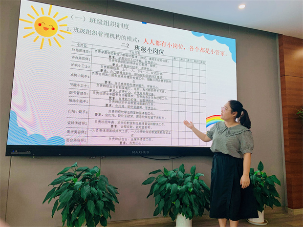 班级评比分为五个板块,分别为:班级文化介绍、规定板块设计、特色板块设计、整体设计效果、实用操作性能。评比过程中,班主任各展风采又互相学习,快来听听她们的介绍吧!