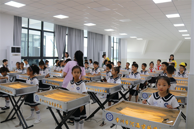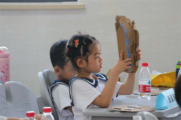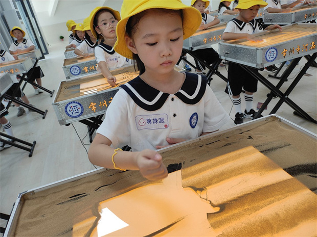 指艺沙画:手握细沙,轻轻扬下,指尖作笔,即能成画。认真看着老师的展示,我们的内心早已蠢蠢欲动。老师一声令下,我们便开始了自己的创作。你瞧,我们认真的模样是不是很可爱呢?