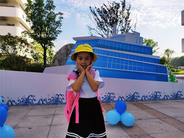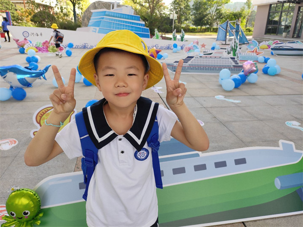 随着时间的推移,越来越多的小水手们涌进了校园。校门内一片蓝色“海洋”,造型各异的船只,活力四射的海洋生物,每一处的用心设计都戳中了我们心中的点。在老师的镜头下,我们或露出腼腆的笑容,或露出洁白的牙齿,或眼睛眯成了一条缝......每一种表情,都代表着内心的激动——原来,我们有这么多“河海号”呀!