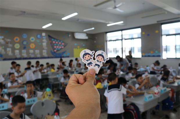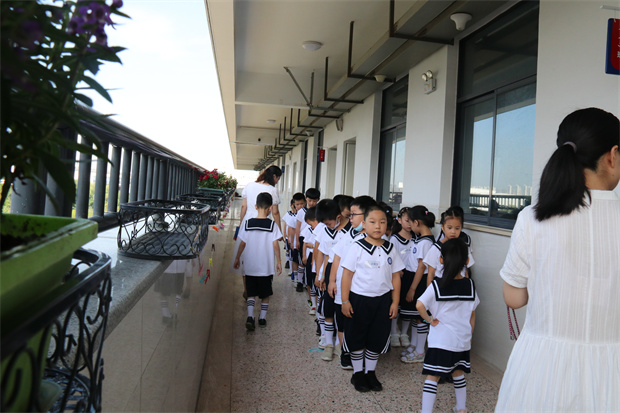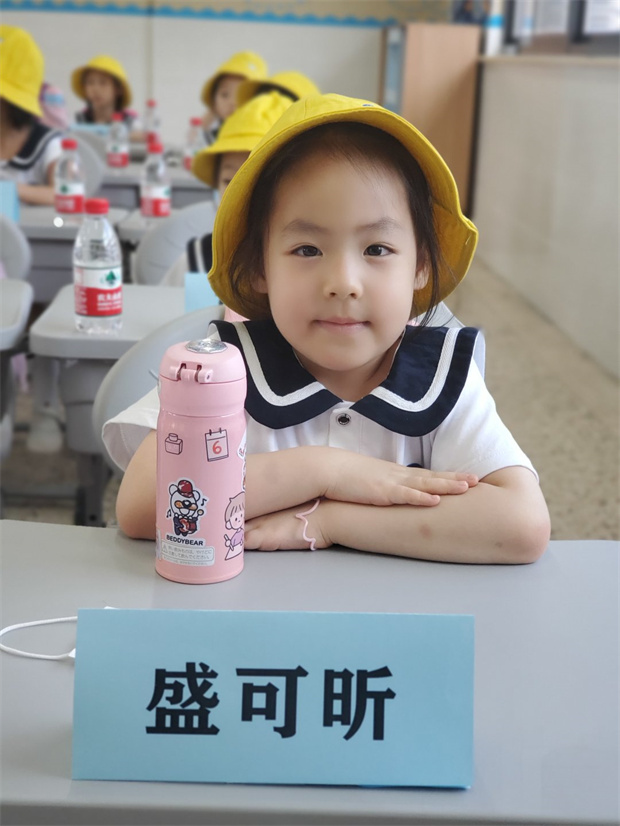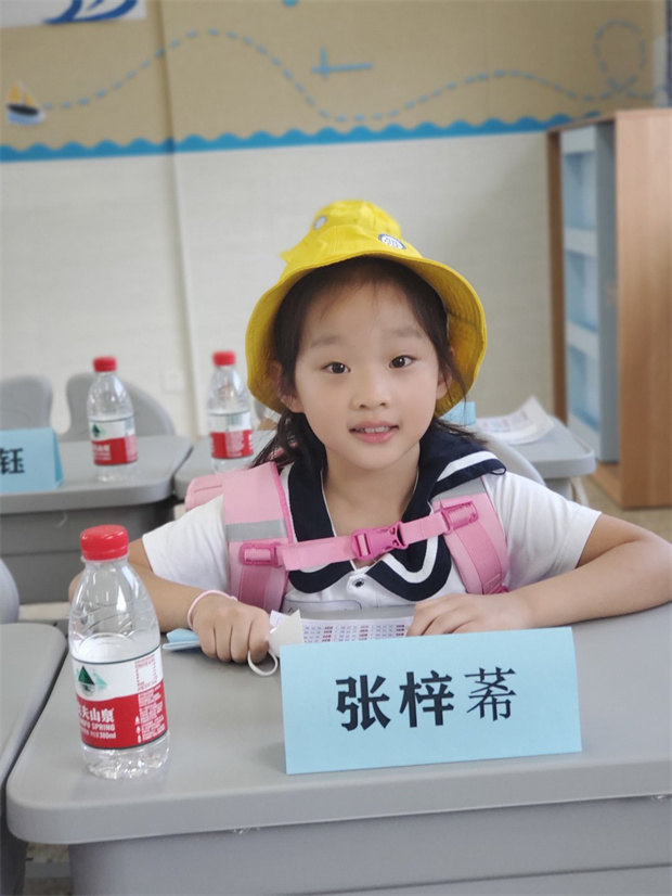 留下仪式感满满的河海第一拍后,我们就踏着属于自己班级颜色的浪花,在二年级哥哥姐姐的指引下走进了教学楼。在教室门口,找到自己的姓名贴,再坐到老师安排的位置上,一个个可兴奋啦!排队也能做到快、静、齐。老师夸我们很有小学生的样子。嘿嘿,其实这是我们在“私人定制”的衔接课程里学到的哦。