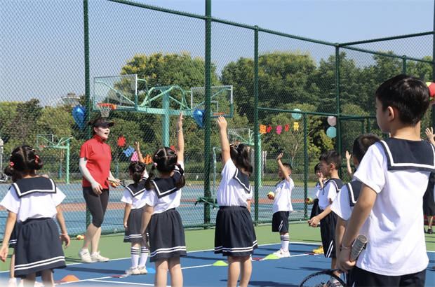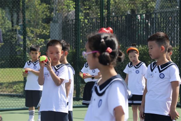 网球:诶,怎么有老师挥舞着球拍在打球呢?凑近一看,是网球呀!以前只在跟着爸爸在电视上看过比赛,今天不仅亲眼见到了,我还拿起球拍打球啦!网球就像顽皮的小兔子,我才刚刚碰到它,它就跳着逃跑了。没关系,等我开学后好好练习,一定会把它“驯服”的!