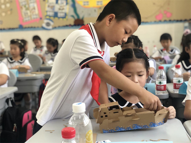 老师说,回家后还能给河海号涂上颜色,我已经想好了,要给河海号涂上蓝色,和它一起乘风破浪,这多酷呀!