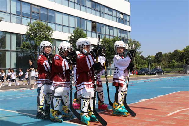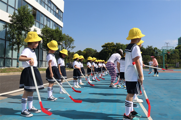 特色曲棍:还没走到运动场地,就听到其他班小朋友们的欢呼声,那是在干什么?哦,原来是我们河海的特色课程——曲棍球呀!只见老师手握曲棍,对着球又是推、又是拨、又是挑,那球彷佛被施了魔法,在操场上“跳舞”。“我也能像老师这么厉害吗?”“当然啦,只要你认真学,一定比老师还厉害!”
