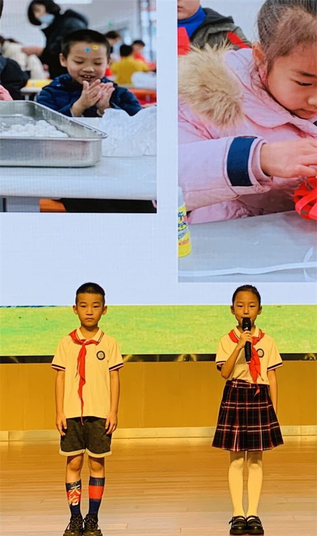 二1班祁予恬:我还记得元宵节的时候,爸爸妈妈和我们一起在学校里做灯笼、挂灯笼、猜灯谜、搓元宵、吃元宵。悄悄告诉你哦,我搓的元宵可好吃了,下次我也想和一年级的小朋友们一起过元宵节!