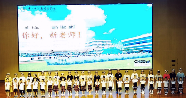 紧接着一二年级的老师们在微视频中纷纷亮相,小朋友们情不自禁地与视频中认识的老师打招呼问好,在一阵阵喝彩声中,25名河海娃为老师们献上了美丽的花环,给老师们带来了新学期第一份惊喜。