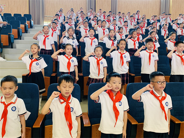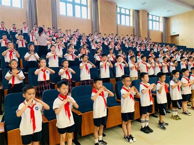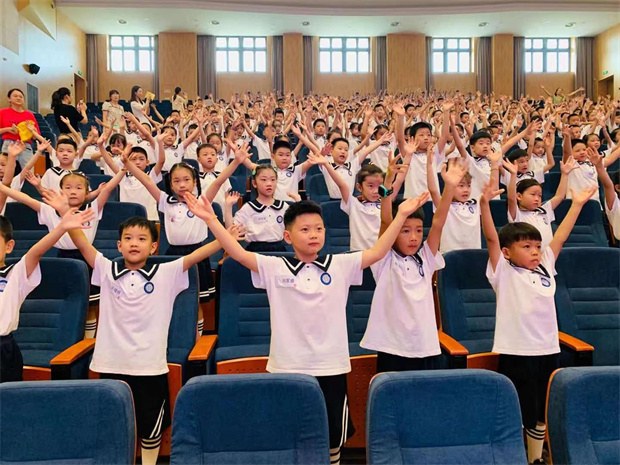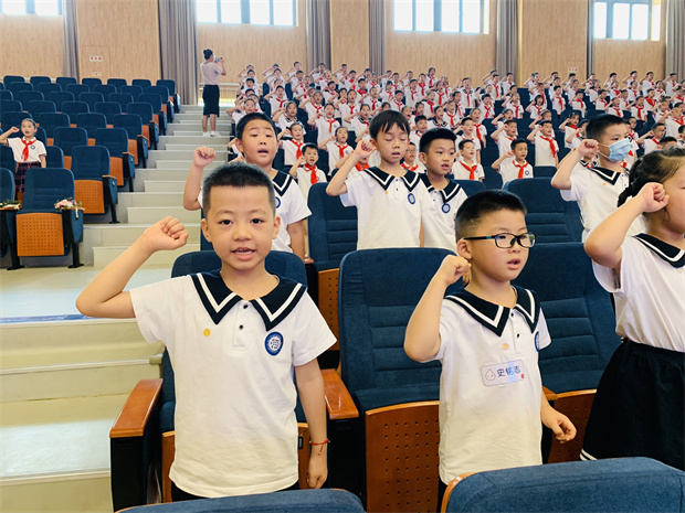 听完王校长的发言,每一位小水手都对新学期充满了信心,他们举起右拳庄严宣誓!