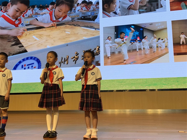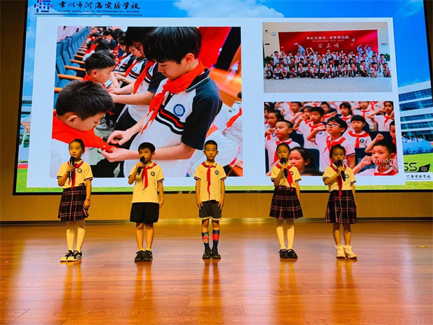王校长送给孩子们两个关键词:“英雄”和“爱”。其实,在我们的身边就有平凡的大英雄,比如在暑假期间为开学忙碌的老师们,他们顶着高温在烈日下工作,只为把最美的开学季送给每一位河海娃,他们就是我们身边的英雄。其实,冒着烈日赶拍《一年级》手势舞的二年级小朋友、在入学仪式活动中坚持参加完每一项体验活动的一年级小朋友,也都是我心中的小英雄。第二个关键词是“爱”。爱的含义很丰富,爱祖国、爱人民、爱红领巾;爱自然、爱社会、爱他人……最后王校长重点解释了“爱自己”,爱自己不是自私,爱自己就是要爱学习、爱劳动、爱挑战、爱守纪、爱独立、爱创造……总之,爱自己就是要让自己变得更自信、更阳光、更美好!